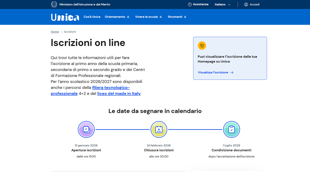 13 gennaio al 14 febbraio - Aperte le iscrizioni per l’anno scolastico 2026/2027