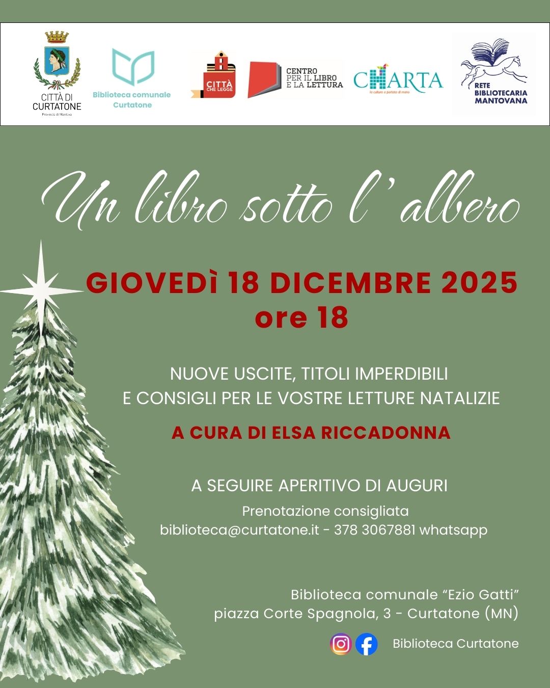 Di seguito: - in primo piano: PCTO IN BIBLIOTECA, "LUCI DI NATALE", "LIBRIAMOCI", "UN LIBRO SOTTO L'ALBERO", "BIBLIOTOMBOLA". IN PRIMO PIANO