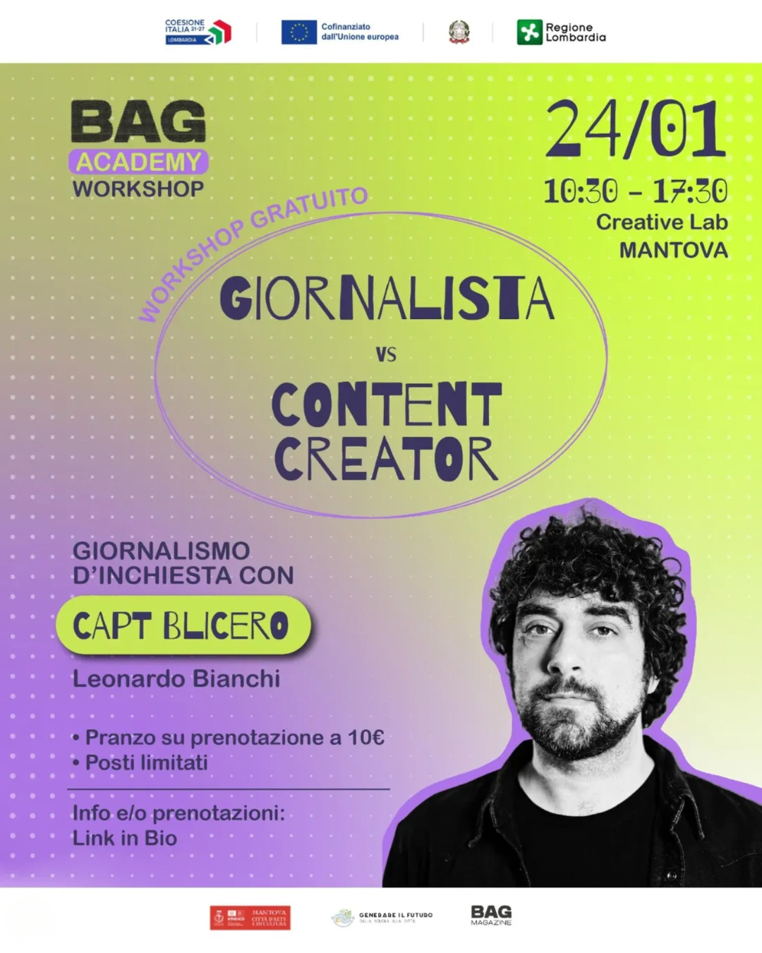 WORKSHOP GRATUITO BAG ACCADEMT: "REPORTER DIGITALE VS CONTENT CREATOR"