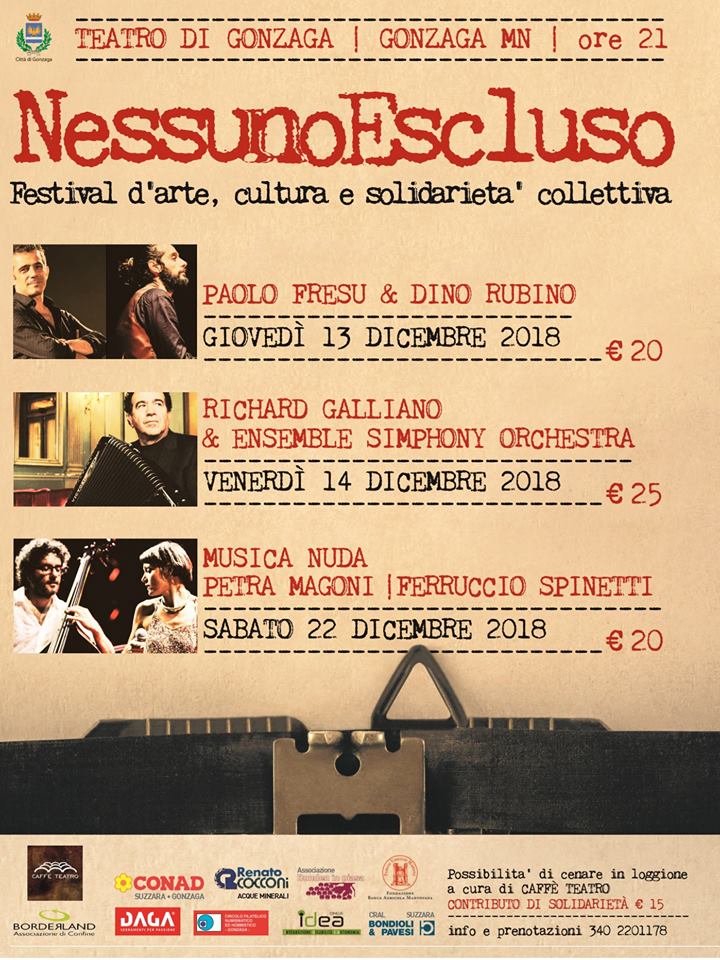A GONZAGA NESSUNO ESCLUSO IV° edizione del festival d'arte, cultura e solidarietà collettiva organizzato dal Comune di Gonzaga, associazione Borderland e Caffè Teatro.